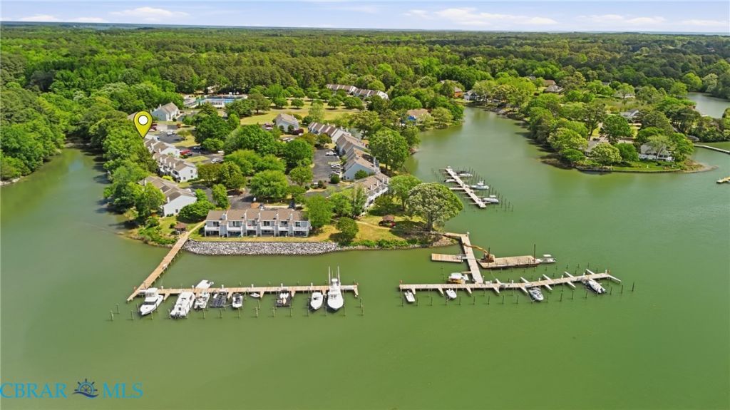 Sarahs Creek does something to you. Maybe its the blue herons gliding in to fish, or the ducklings paddling past your patio, or just the way the water quiets everything down. This 2-bed, 2.5-bath end-unit waterfront condo in the desirable Dockside community of Hayes, VA (Gloucester County) offers a truly tranquil, laid-back coastal lifestyle, whether youre downsizing, shopping for a low-maintenance second home, or ready to trade chaos for calm. Tucked away on the tidal creek, this end-unit provides extra privacy, wonderful natural light, and an open buffer with no attached neighbor on that side. Step inside to a sunny eat-in galley kitchen with a pantry closet and a bright breakfast nook area. The kitchen opens to the living room, also accessible down the hallway past the powder room. The living room showcases a cozy wood-burning stone fireplace and stone accent wall, with sliding glass doors opening to your covered waterside patio, attached storage, and a wooden privacy wall. Instead of a noisy marina, your backyard overlooks a remarkably quiet, serene creek view. The second floor is highly functional with a dual-ensuite layout and a laundry closet at the landing. The primary suite is a peaceful waterfront retreat with a walk-in closet, en-suite bath, and private balcony where you can take in the elevated scenery. The spacious guest bedroom faces the front, soaking in natural light, with its own full bath. A flexible space for a guest room or home office. Simplify your routine with lock-and-leave living: the association covers water, community septic, trash, yard work, grounds, and exterior building maintenance. Gain access to resort-style amenities including a pool, tennis and pickleball courts, clubhouse, gazebo, community garden, and community docks. Easy commute to nearby military bases and the Chesapeake Bay. Note: communal storage, separate sheds, RV/boat parking, and deep-water boat slips MAY be available upon request through the association for an additional fee (not included with sale).